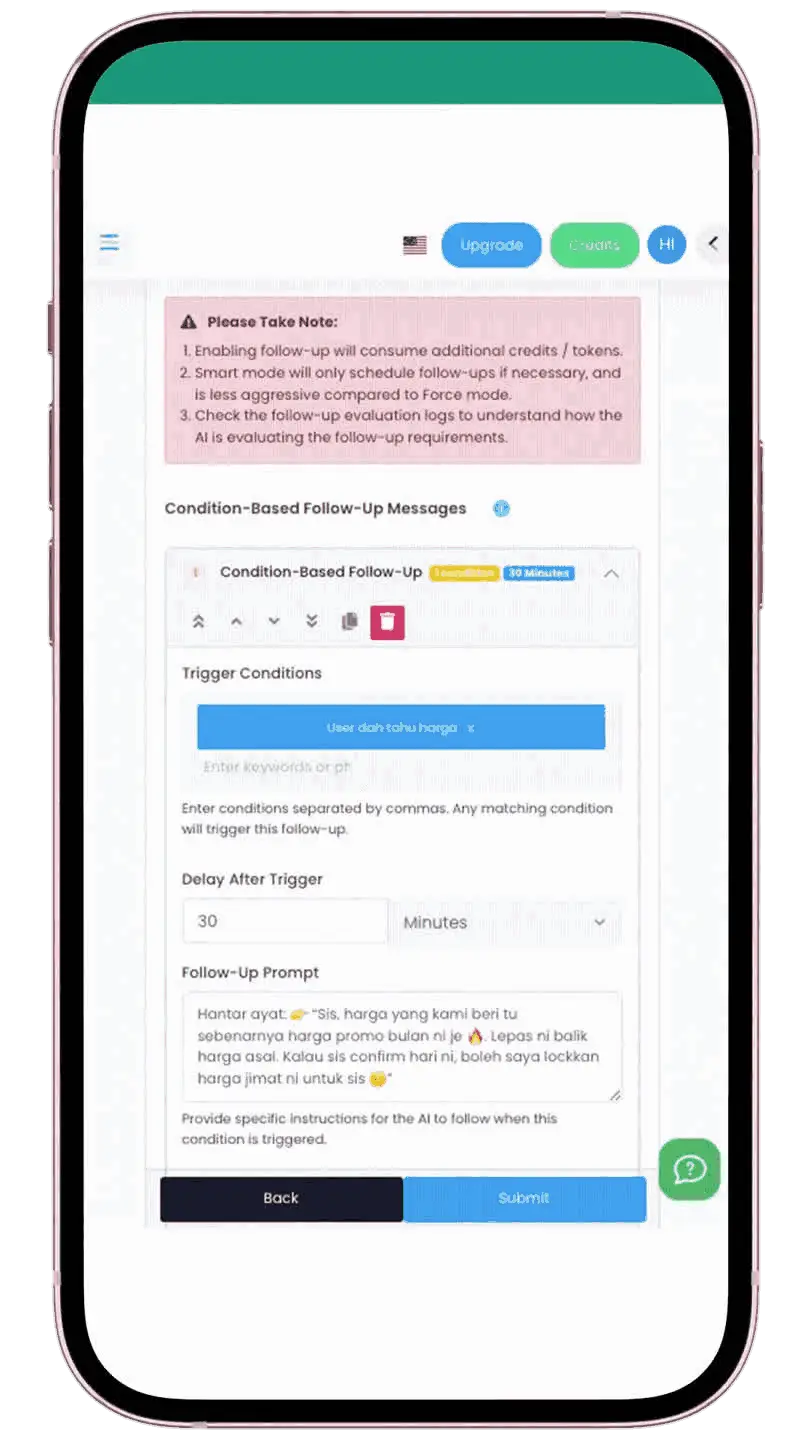 - Tindak lanjuti secara otomatis prospek yang belum merespons menggunakan skrip/tool yang telah Kamu siapkan.